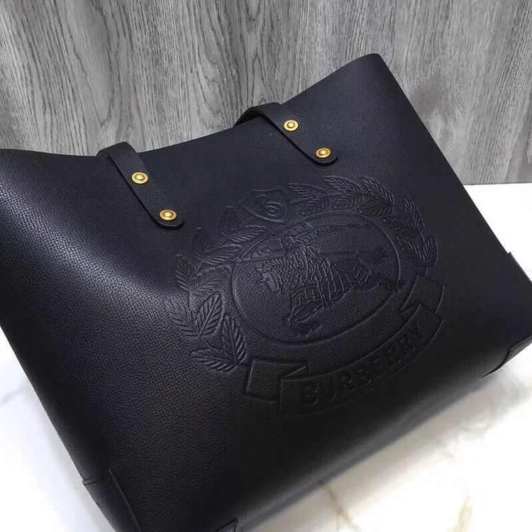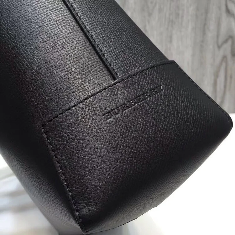 Design: Structured silhouette with polished metal hardware and signature Burberry branding