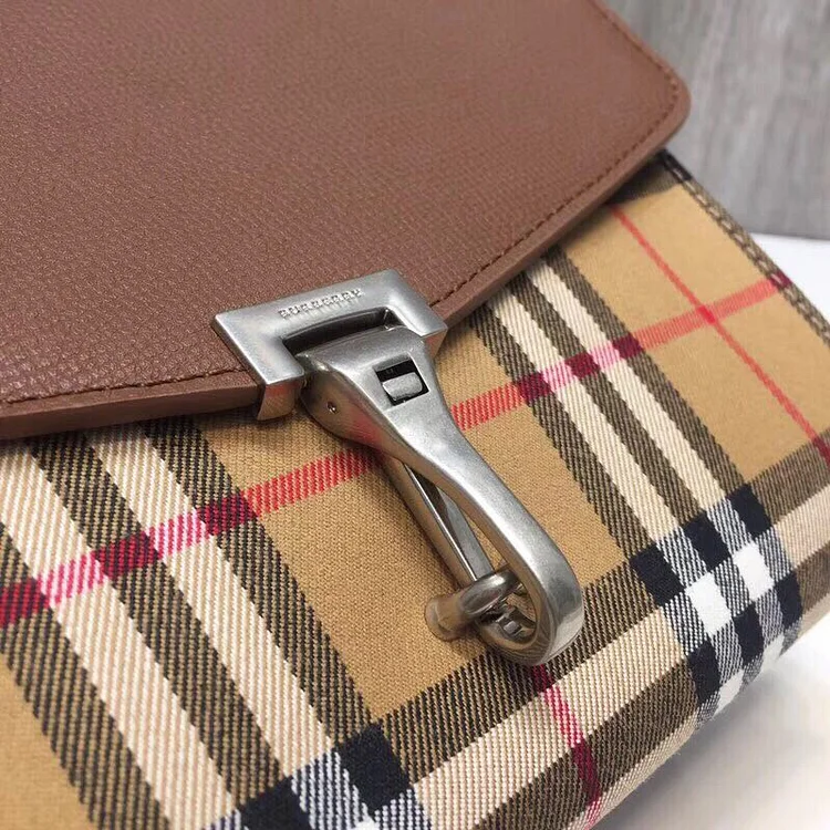 The Burberry Small Vintage Check and Leather Crossbody Bag is a refined and versatile accessory, perfect for daily use. Crafted in Italy from a combination of grainy calf leather and the iconic Vintage Check cotton canvas, this bag seamlessly blends classic heritage with contemporary design.