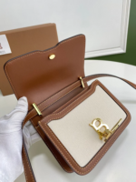 A structured, elegant bag crafted from two-tone canvas with topstitched calf leather accents, finished with the iconic Thomas Burberry Monogram clasp. This versatile piece can be worn on the shoulder, styled as a crossbody, or carried as a chic clutch.