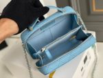 - Elegant Design: Features a classic vanity case silhouette with a structured shape, accented by a sleek top handle and elegant stitching, exuding timeless elegance.