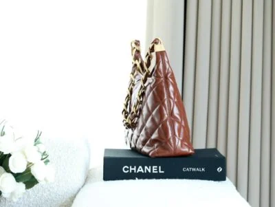 Inspired by the classic Chanel 19, the bag features an iconic oversized chain in thick-plated 24K retro gold, adding a vintage yet sophisticated touch.