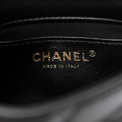 This is an authentic CC Lambskin Quilted Mini CC Funky Town Flap in Black. Crafted from soft, quilted lambskin leather, this elegant bag exudes timeless charm. It features a polished gold chain-link shoulder strap interwoven with leather and a signature gold CC turn-lock closure. The flap opens to reveal a black fabric interior with a convenient patch pocket.