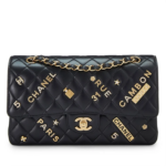 - A highly rare and collectible edition of CC’s iconic Flap Bag from the Spring/Summer 2021 collection. This medium shoulder bag is expertly crafted from black quilted lambskin leather and adorned with gold-tone Lucky Charm metal embellishments, accented with sparkling crystals and faux pearls. It is elegantly finished with the signature ‘CC’ turn-lock closure on the front flap.🚚 Fast Shipping: Get your Handbag in just 7 to 9 working days!