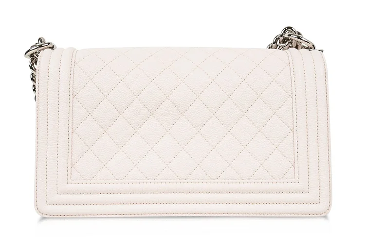 The CC CN40 Boy Bag in 25 cm is a bold and structured statement piece, crafted from luxurious caviar leather for durability and texture. Featuring the iconic chunky chain, signature Boy clasp, and a sleek silhouette, it blends modern edge with timeless elegance—ideal for elevating any outfit.