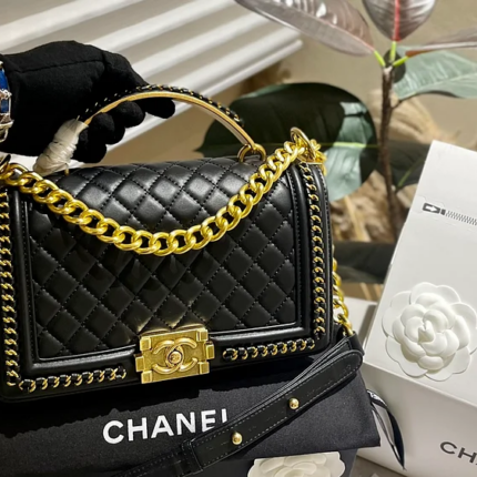 “Elegant and timeless, the CC Coco Handle Bag is crafted from luxurious caviar leather, featuring the iconic quilted design and signature CC turn-lock closure. With its structured top handle and optional shoulder strap, this piece effortlessly blends classic Chanel charm with everyday versatility.”