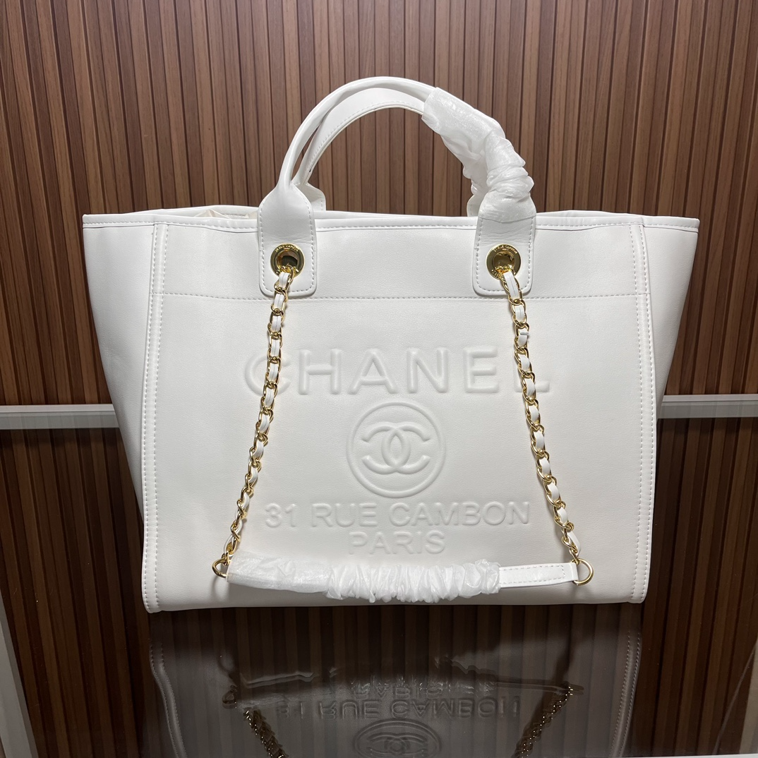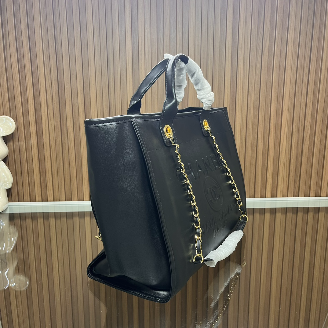 Chic and versatile, this CC leather tote bag features a stylish black and white design. Crafted from premium leather, it offers both elegance and durability. With generous dimensions of 36.5 x 32 x 15 cm, it provides ample space for everyday essentials while maintaining a sleek, structured silhouette — perfect for work, travel, or daily outings.