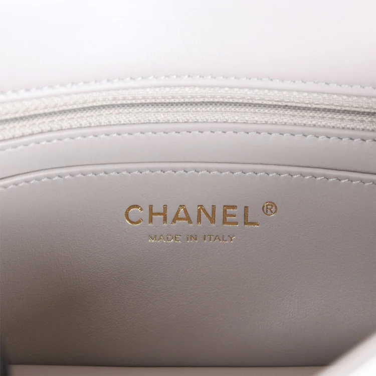 The CC Pearl Crush Mini Rectangular Flap Bag in Light Grey is a timeless blend of elegance and charm. Crafted from luxurious leather, it features the iconic quilted design, accented with a chic pearl-adorned adjustable chain. Compact yet statement-making – perfect for day to night transitions.