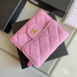 The CC Small Classic Flap Wallet in Pink offers a chic and feminine touch to everyday essentials. Crafted from premium leather with the iconic quilted design and CC logo, it includes multiple card slots and a secure snap closure—perfect for stylish, on-the-go organization.