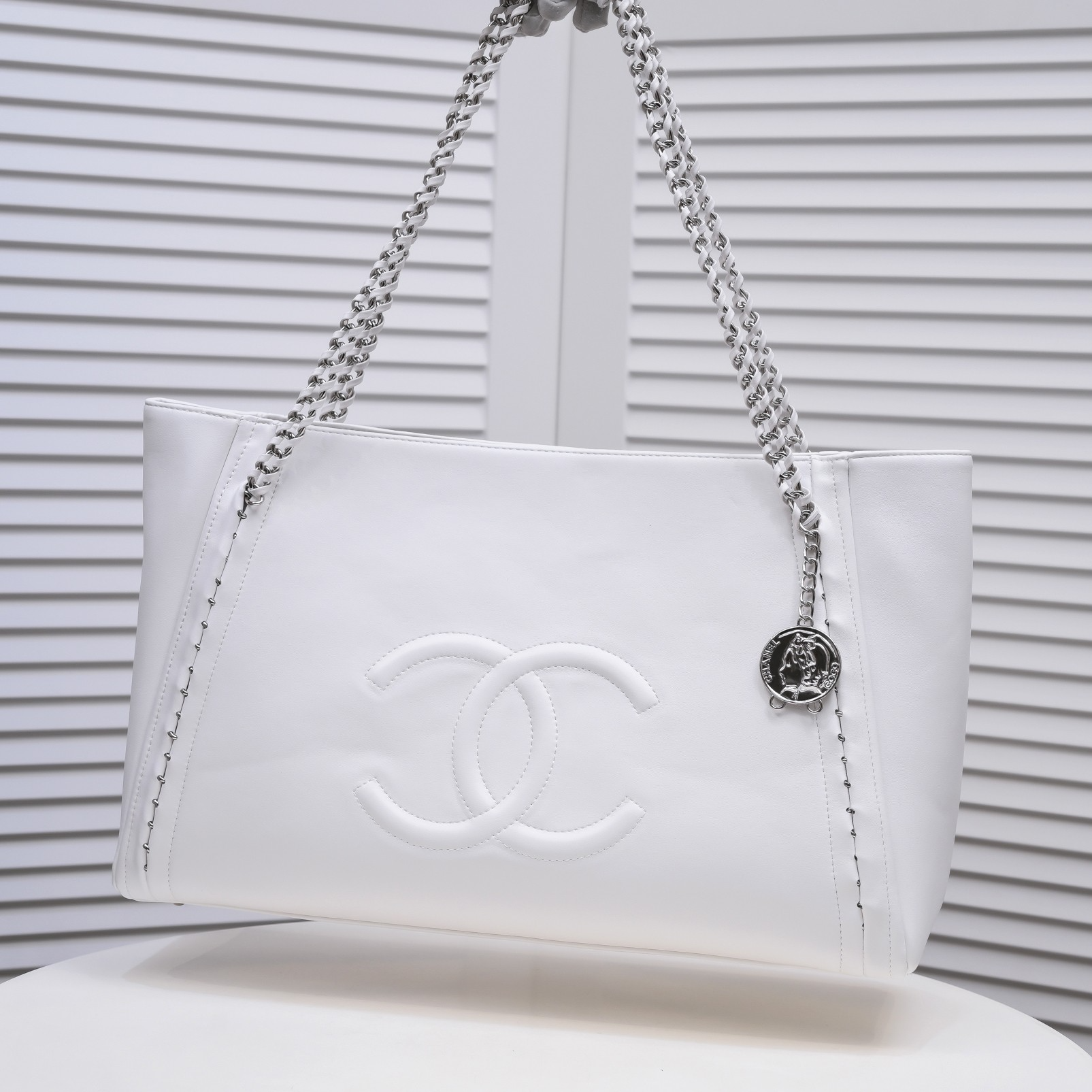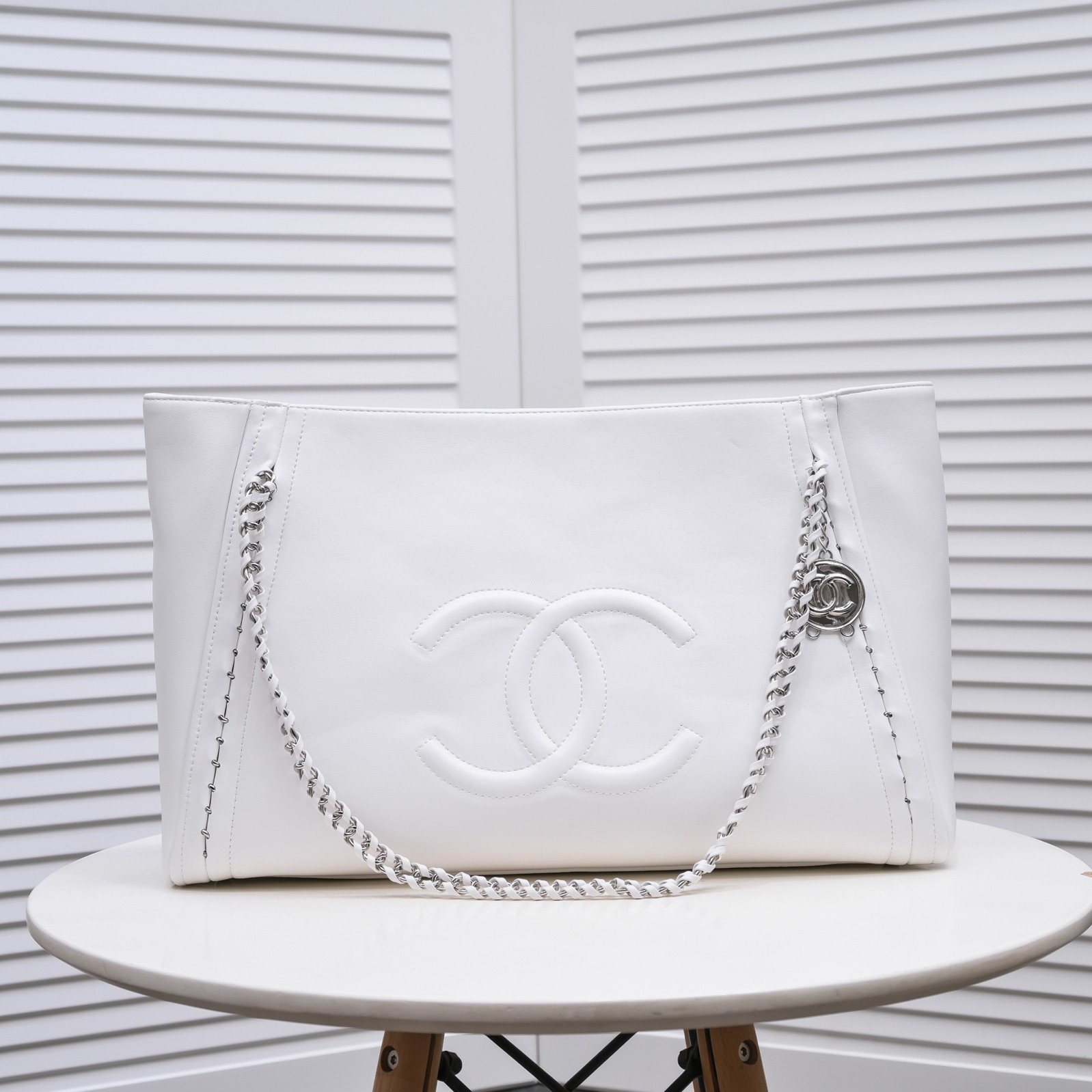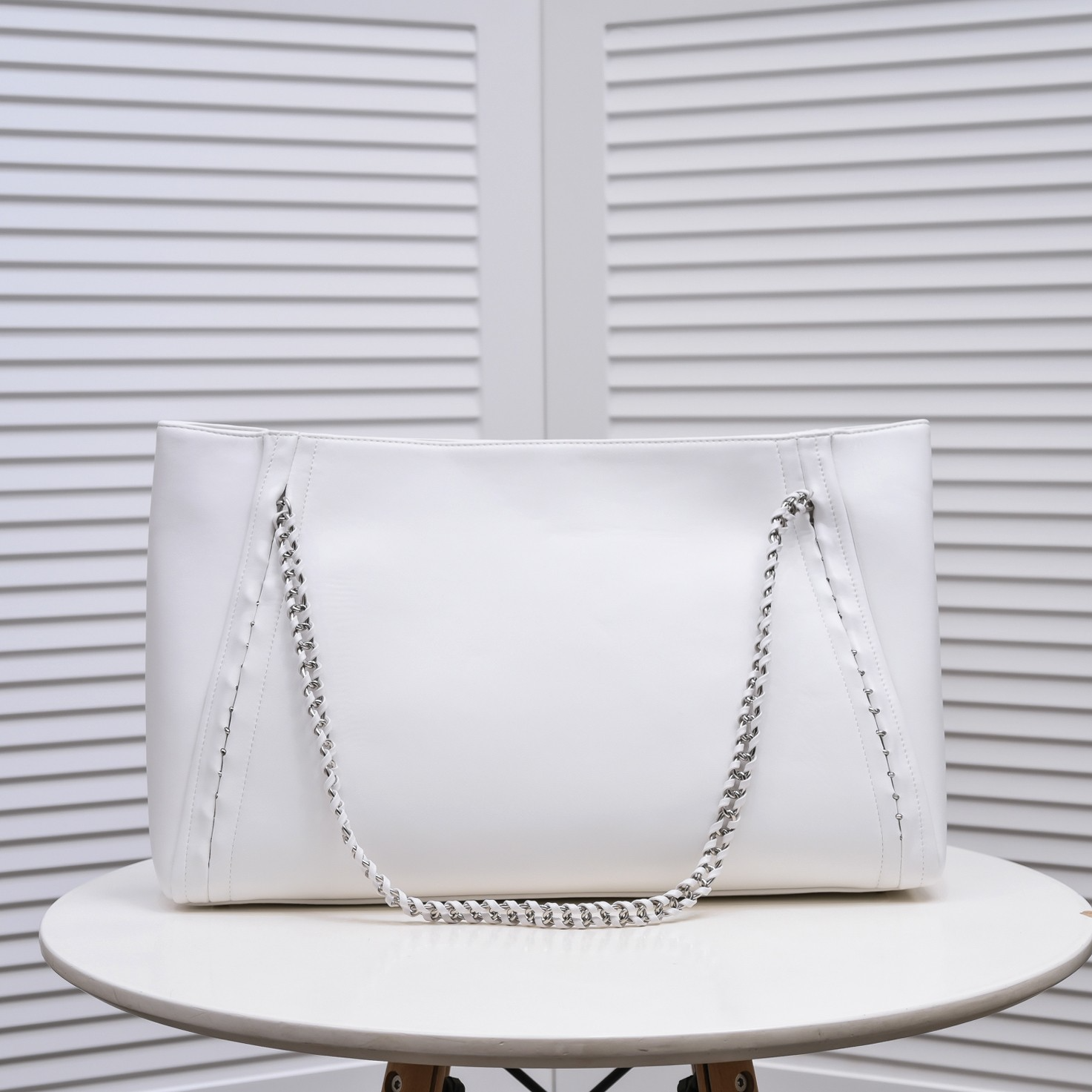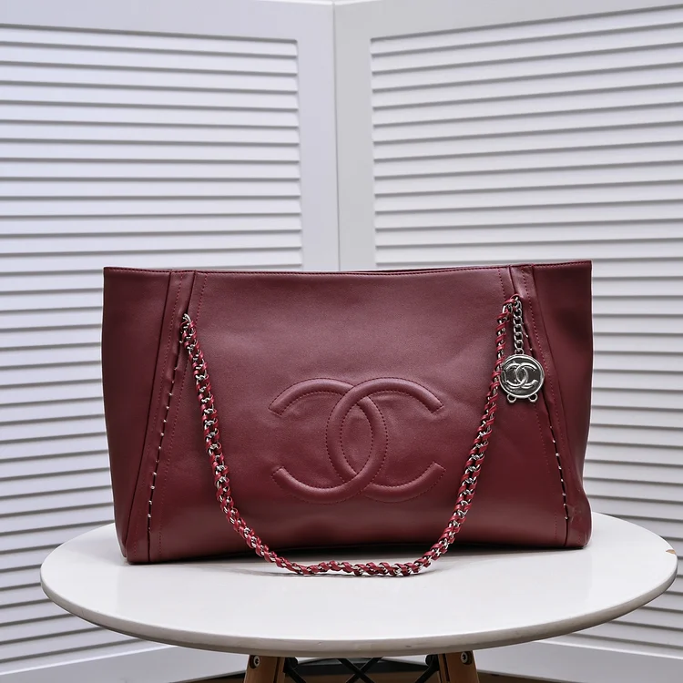 The CC Soft Calfskin Shopping Bag in Red/White is a striking blend of sophistication and practicality. Designed with supple calfskin leather, this top-handle tote offers a roomy interior and elegant structure, ideal for elevating everyday looks with a bold pop of color.