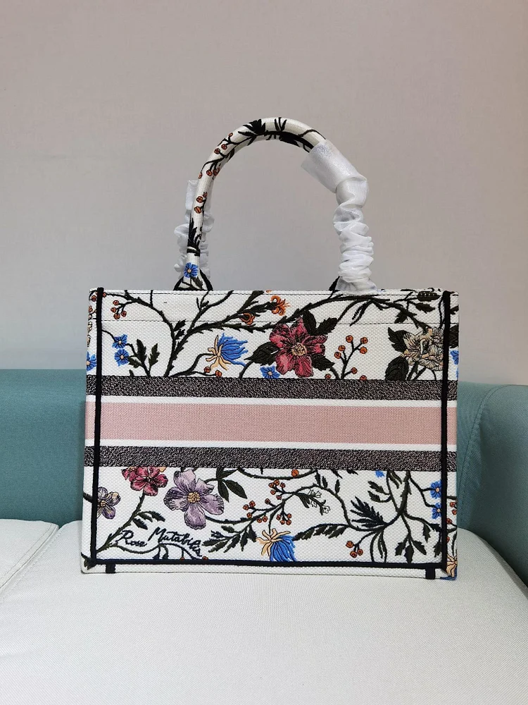 The CD Book Tote, originally designed by Creative Director Maria Grazia Chiuri, has become an iconic piece of the CD aesthetic. This small version, intricately embroidered with the Mille Fleurs motif, evokes the picturesque landscapes of Apulia—a key inspiration for the collection. Featuring the distinctive ‘CD’ signature on the front, this tote showcases the House’s exceptional craftsmanship. Designed for versatility, it can be carried by hand or worn over the shoulder.