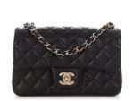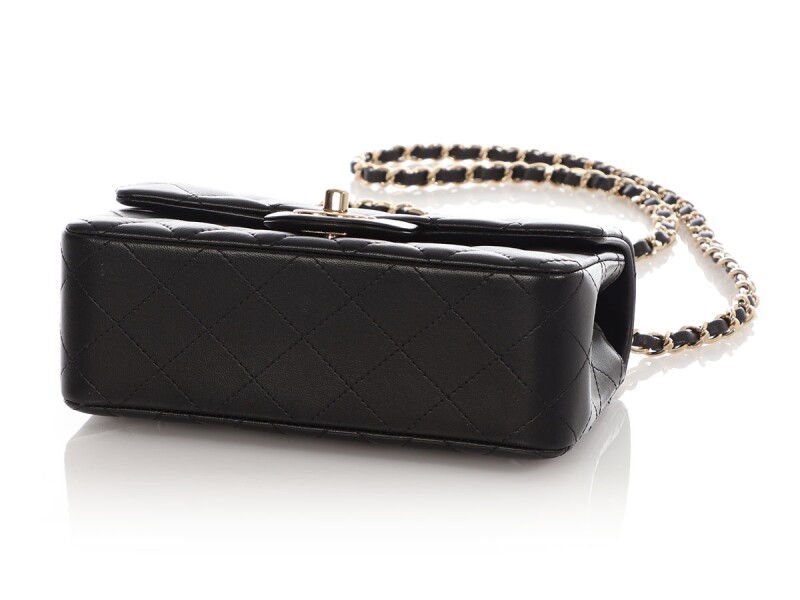 Chanel Black Quilted Lambskin Classic Mini Rectangular Flap Bag with Gold Hardware.Crafted from luxurious black quilted lambskin, this Classic Mini Rectangular Flap Bag features iconic Chanel detailing, including the signature CC turn-lock in elegant gold hardware.The interior is lined in rich burgundy leather, a hallmark of Chanel’s timeless craftsmanship.Includes: authenticity card, dust bag,
