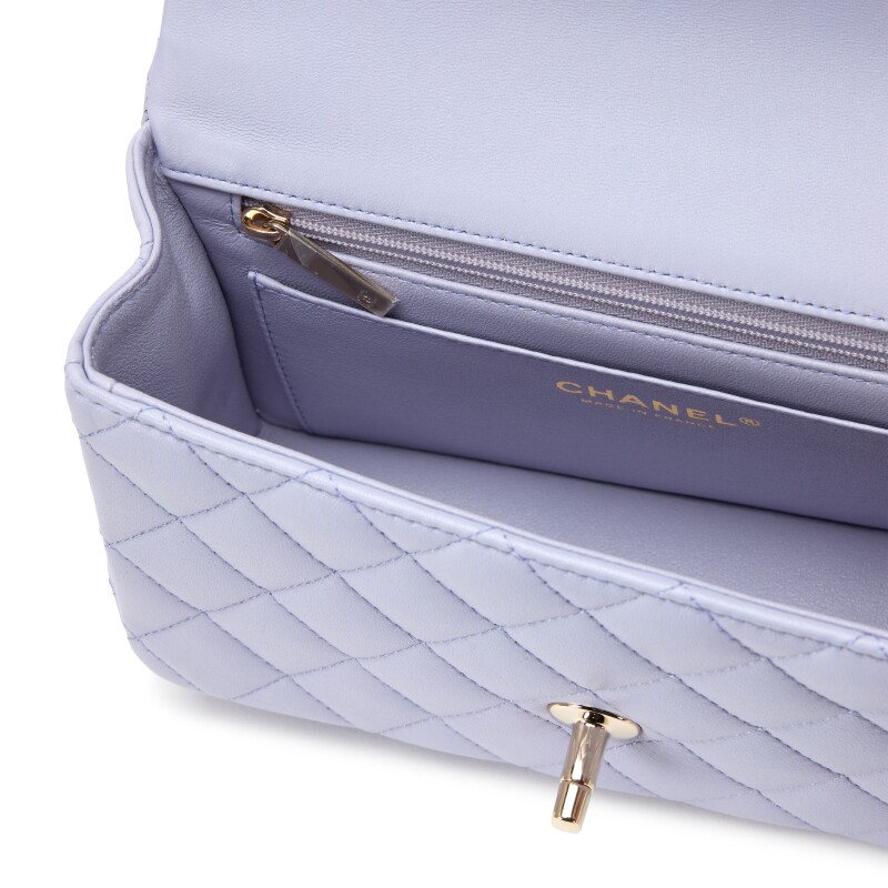 The Chanel Light Purple Mini Flap Bag is a delicate and elegant accessory that adds a soft pop of color to any outfit. Crafted from luxurious leather in a pastel purple hue, it features the iconic quilted design, classic flap silhouette, and signature CC turn-lock closure. Compact and charming, this mini bag is perfect for both casual and dressy occasions, offering timeless Chanel style with a fresh, feminine twist.