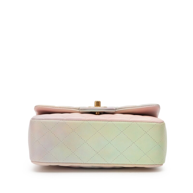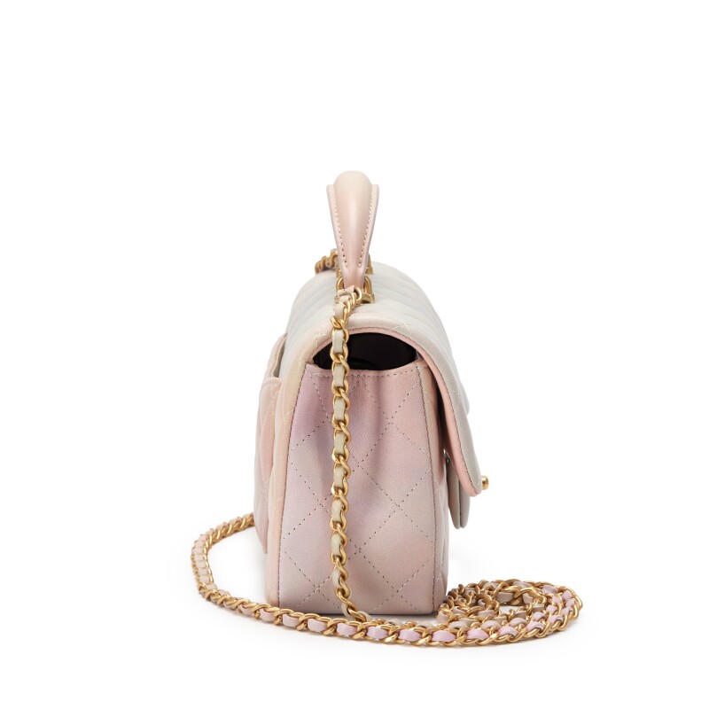 The Chanel Pink Ombre Mini Flap Bag with Gold Hardware is a stunning blend of playful charm and classic elegance. Featuring a soft gradient of pink hues, this mini flap adds a fresh, feminine twist to Chanel’s iconic silhouette.