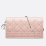 The Christian Dior Lady D Clutch with Chain in Pink Patent Leather is a refined accessory that seamlessly blends elegance with functionality. Crafted from glossy pink patent leather, it showcases Dior’s signature Cannage quilting and is adorned with the iconic ‘D.I.O.R.’ charms in gold-tone hardware