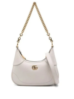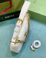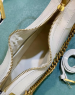 Presented against the historic Castel del Monte in Italy, the Cruise 2023 GC Cosmogonie collection seamlessly blends aesthetics from distant eras and cultures, bridging the past with the present. Inspired by the House’s archives, this small crescent-shaped shoulder bag is crafted from soft black leather and features the iconic Double G emblem, a symbol first introduced in the 1970s. Designed with versatility in mind, it comes with two shoulder straps: one in leather and the other in GC’s signature gold-toned chain.-