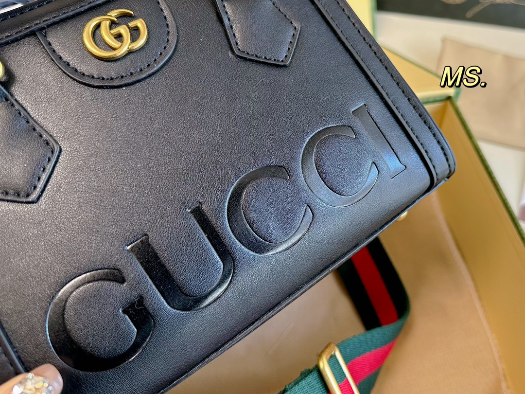 The Gucci Diana Mini Tote Bag is a refined accessory that reimagines a classic 1991 design favored by Princess Diana. Crafted in Italy from premium leather, it features Gucci’s signature bamboo handles adorned with removable leather belts—a nod to the original functional bands used to maintain handle shape. The bag is embellished with the iconic Double G hardware and includes an interior open pocket for essentials. Its dimensions are 20cm (W) x 16cm (H) x 10cm (D), making it compact yet functional. The tote comes with both a web strap (90–142 cm) and a leather strap (93–109 cm), offering versatile carrying options. Available in various colors, including green, black, and pink, the Diana Mini Tote Bag combines timeless design with modern elegance.