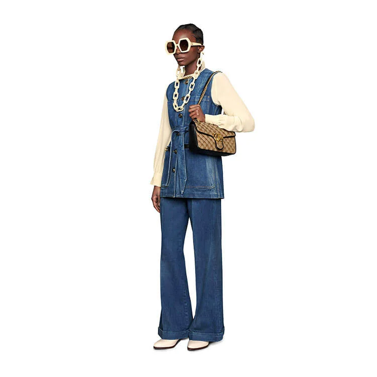 The GG Marmont Small Shoulder Bag, crafted from soft matelassé leather, features the iconic Double G hardware for a touch of elegance. Its compact size and versatile chain strap make it perfect for both day and night, offering a timeless addition to any wardrobe.