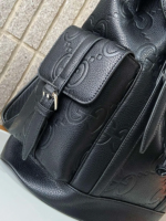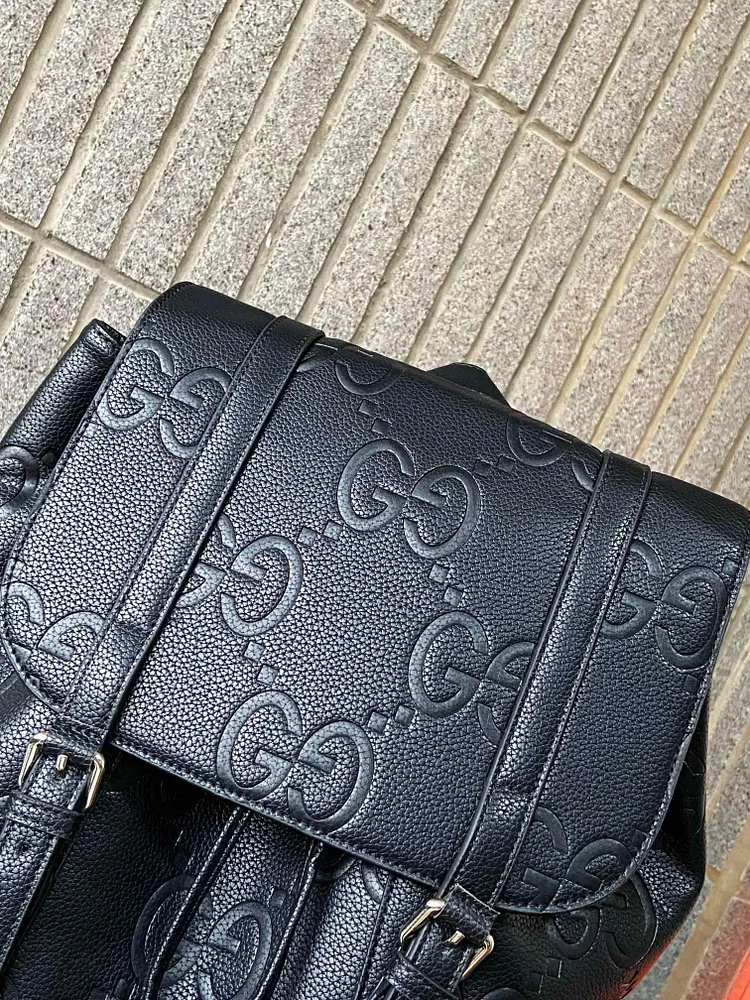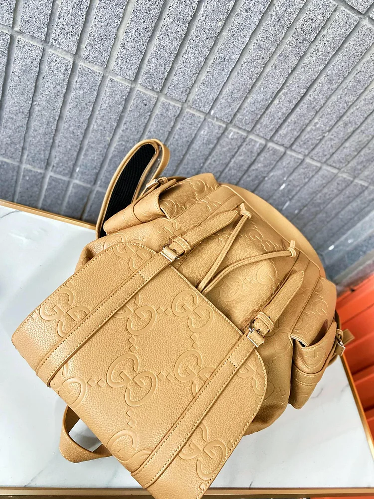 - The Gucci Monogram Canvas Backpack is a stylish and functional accessory designed for both men and women. Crafted from a durable blend of 95% canvas and 5% leather, it features the iconic multicolored GG monogram pattern that adds a bold touch to any ensemble. With dimensions of 32.5 cm (W) x 43 cm (H) x 8 cm (D), this backpack offers ample space for daily essentials while maintaining a sleek profile. Whether for urban adventures or everyday use, this Italian-made piece combines practicality with Gucci’s timeless design.