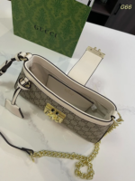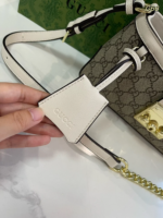 The Gucci Padlock Mini Shoulder Bag is a refined accessory that combines the brand’s heritage with modern design. Crafted from beige and ebony GG Supreme canvas, it features contrasting black and brown leather details and gold-toned hardware. The bag is secured with Gucci’s signature padlock closure, accompanied by a leather key holder. Its interior includes an open pocket, and the adjustable chain and leather strap offers versatile carrying options. With dimensions of 22cm (W) x 11.5cm (H) x 7.5cm (D), this Italian-made piece is both functional and stylish.