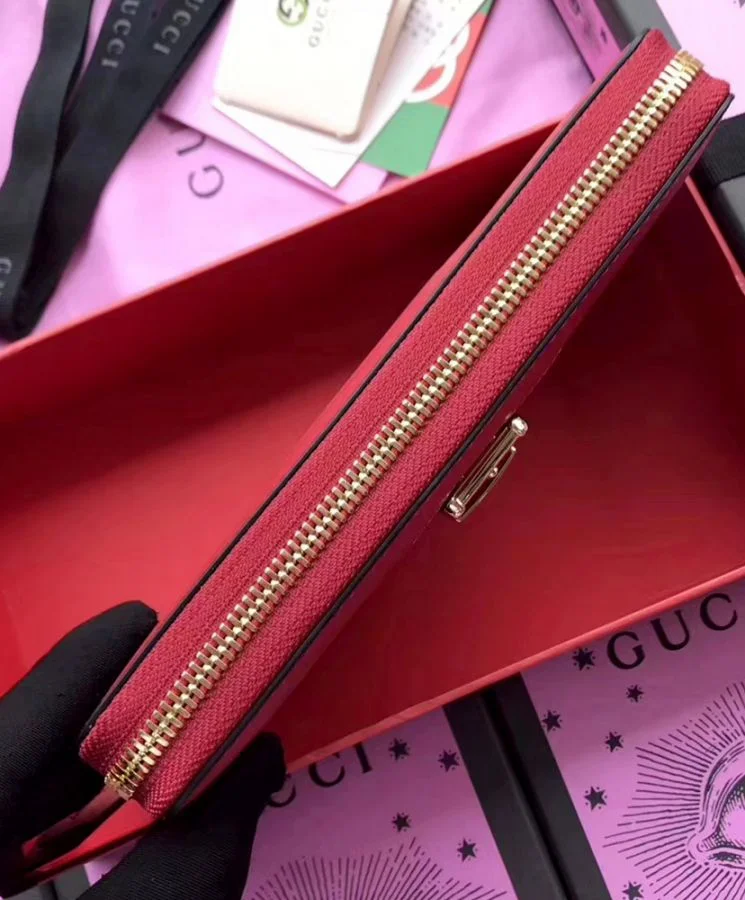 The Gucci Sylvie Zip Around Wallet (Style 476083) is a sophisticated accessory that combines timeless design with practical functionality. Crafted in Italy from smooth leather, it features the iconic Sylvie Web stripe and gold-tone chain buckle detail, reflecting Gucci’s rich heritage.