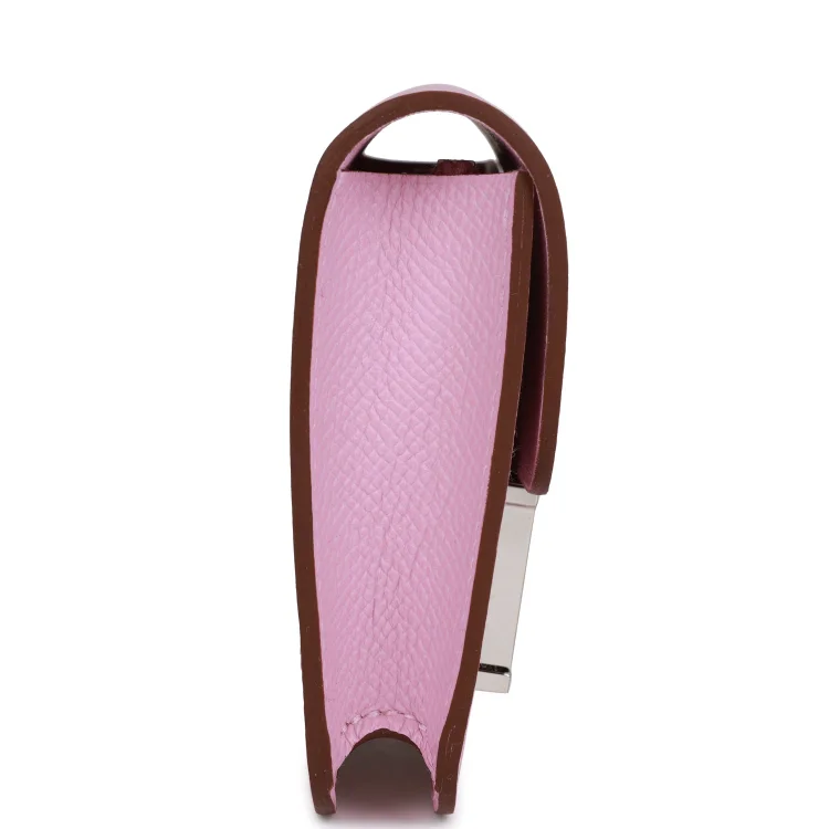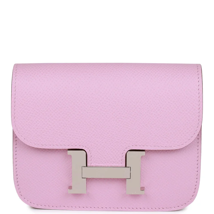 This Hermès Constance Slim Wallet is crafted in elegant Mauve Sylvestre Epsom leather with palladium hardware and features tonal stitching, a rear belt loop, front flap, and a removable coin pouch for added versatility.