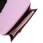 The interior is lined in matching Mauve Sylvestre leather and includes one slip pocket on the front wall and another on the rear wall for organization.