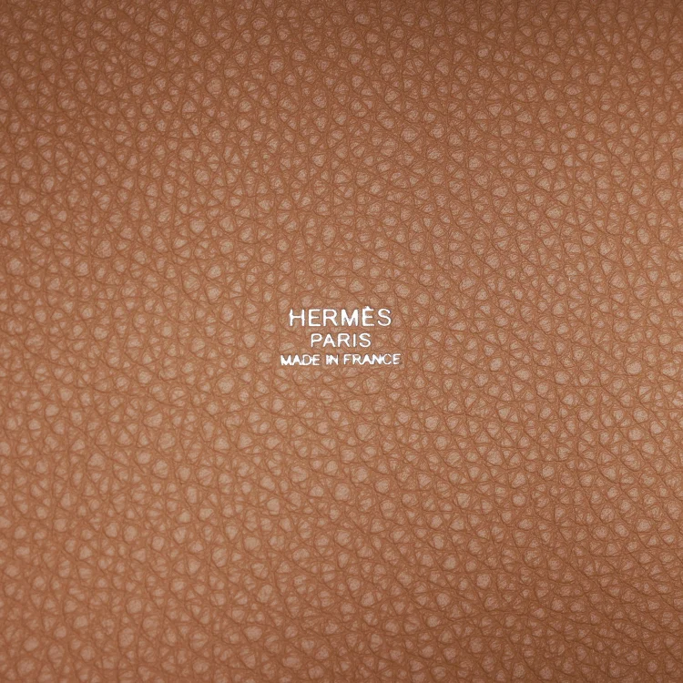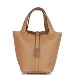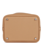This Picotin is crafted from Chai Clemence leather with palladium hardware and features tonal stitching and two top handles.