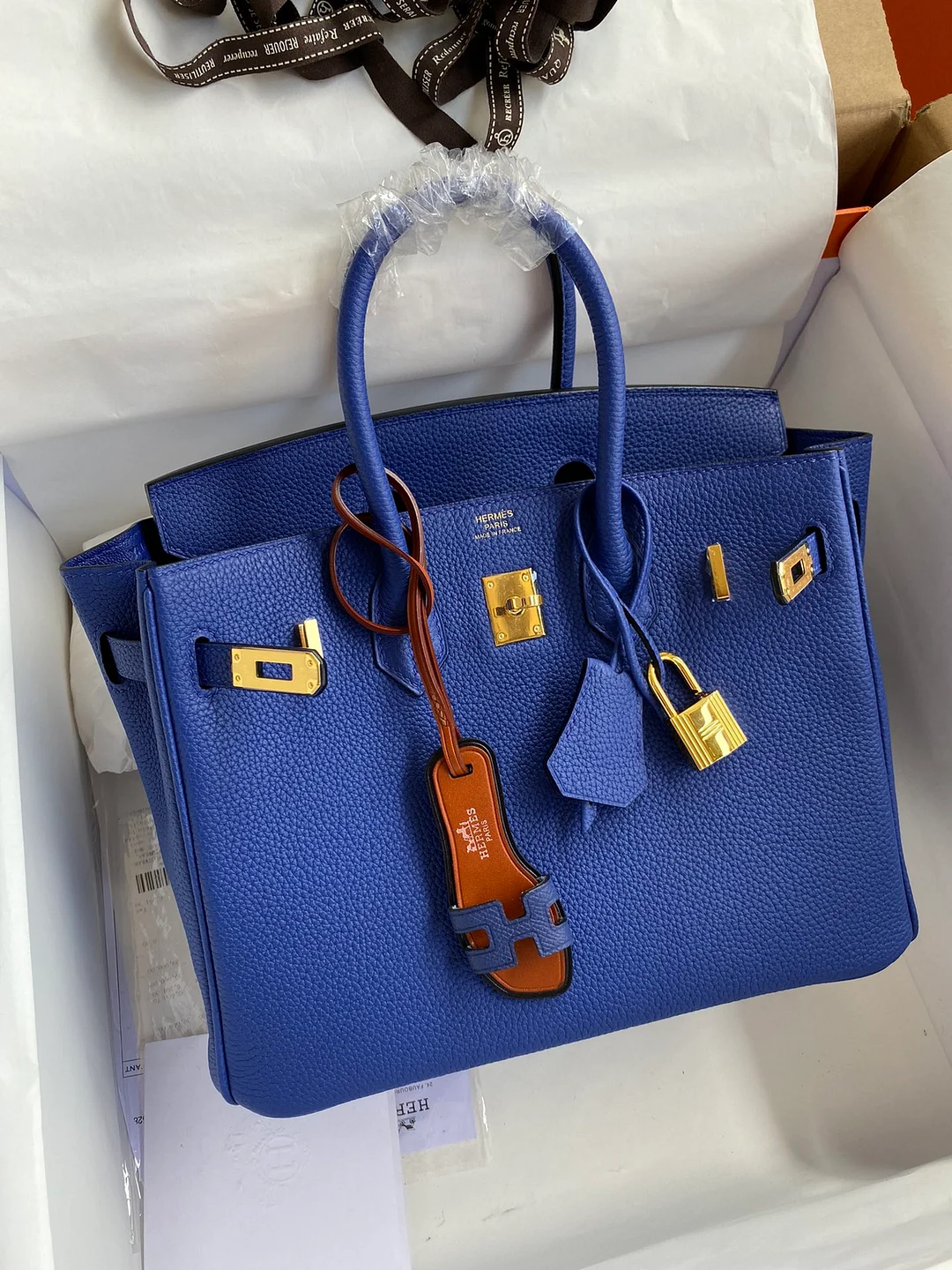 - The Hermès Birkin 30 Blue with Palladium & Gold Hardware is a timeless and iconic luxury handbag. Crafted from premium leather, this 30cm Birkin features a vibrant blue shade that exudes elegance and sophistication. The combination of palladium and gold hardware adds a perfect contrast to the rich color, giving it a refined yet bold look. Known for its impeccable craftsmanship, the Birkin 30 offers both style and functionality, with a spacious interior and signature lock-and-key closure. This bag is a true symbol of luxury and status, cherished by fashion lovers worldwide.
