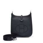 The Hermès Black Clémence Mini Evelyne is a chic and casual everyday bag, beloved for its lightweight design and effortless style. Crafted from soft, grained Clémence leather in classic black, it features the signature perforated “H” logo and a comfortable canvas strap for crossbody wear. Compact yet practical, the Mini Evelyne is perfect for on-the-go essentials, combining timeless Hermès craftsmanship with relaxed elegance.