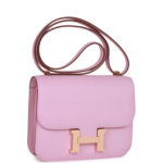 This Hermès Constance is beautifully crafted in delicate Mauve Sylvestre Epsom leather with rose gold hardware, featuring tonal stitching, the iconic metal ‘H’ snap lock closure, and an adjustable shoulder strap for versatile wear.