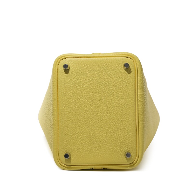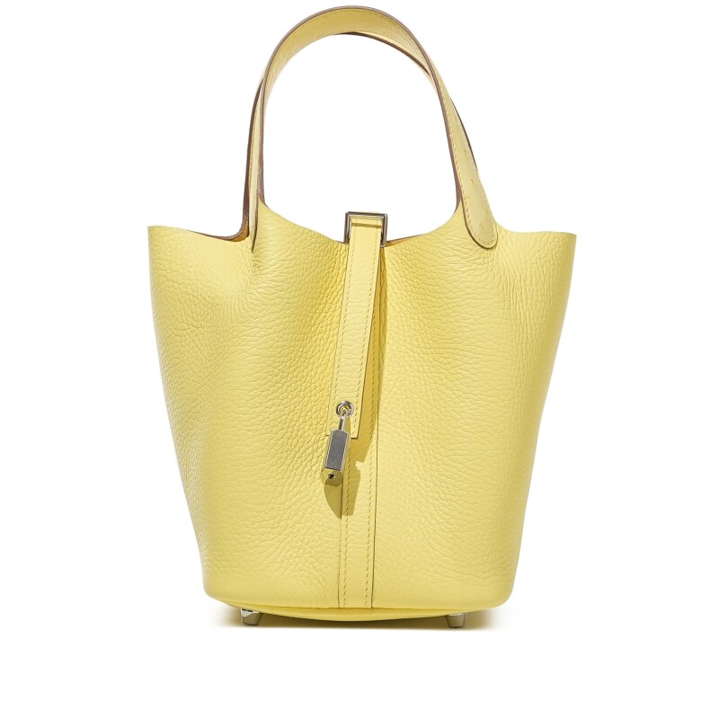 The Hermès Picotin Lock 18 in Lime Clemence Leather with Palladium Hardware is a bold and playful take on a classic design. Crafted from soft-grained Clemence leather, this bucket-style bag features a minimalist silhouette secured with a signature palladium padlock. The bright lime hue adds a refreshing pop of color, making it the perfect statement piece for everyday chic.
