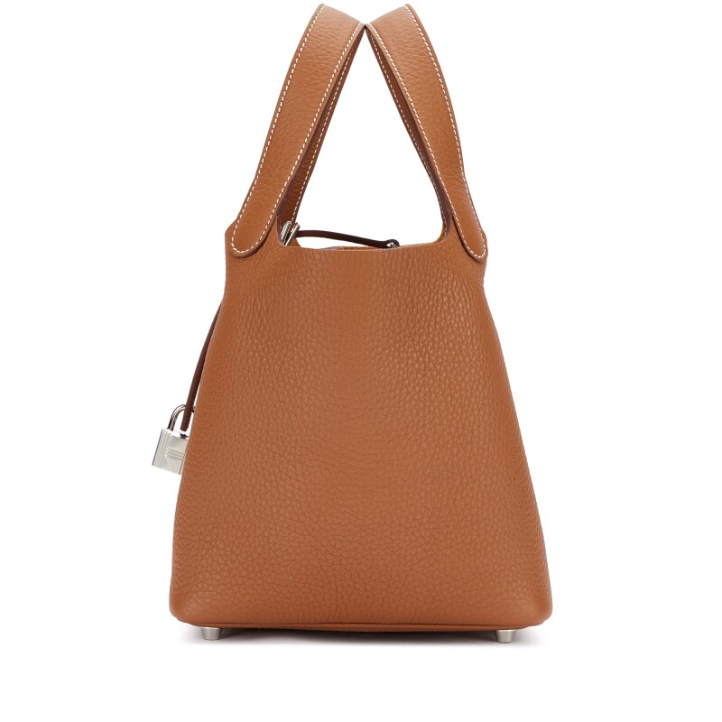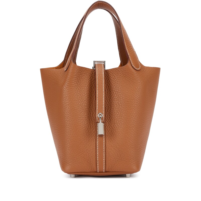 The Hermès Picotin 18 Gold Clemence with Palladium Hardware (PHW) is a timeless and elegant handbag, known for its understated luxury. Crafted from soft, grained Clemence leather in Hermès’ signature Gold hue, it features a minimalist bucket design and a chic, relaxed structure. The palladium hardware adds a sleek, modern contrast to the warm tone. Compact yet functional, this bag is perfect for daily wear while showcasing the impeccable craftsmanship Hermès is celebrated for.
