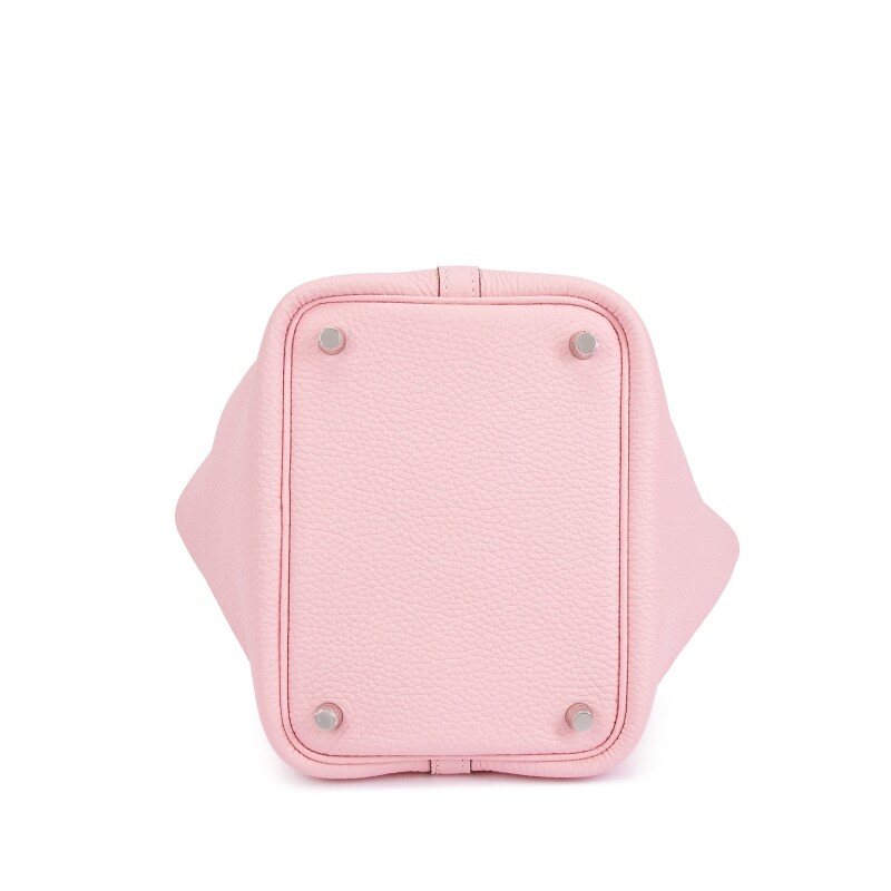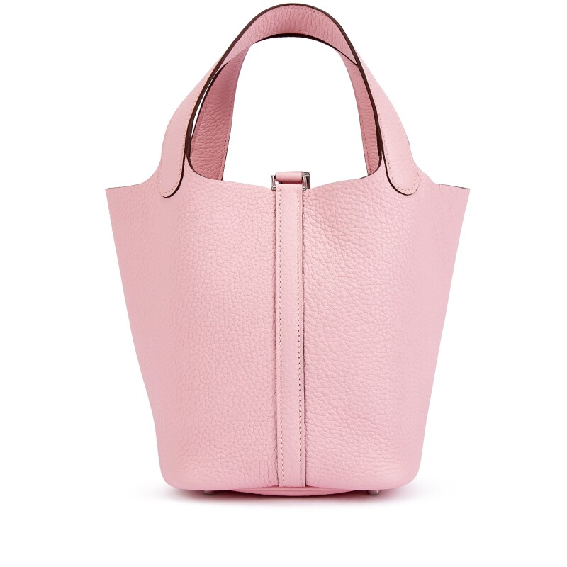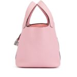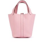 The Hermès Picotin 18 in Rose Sakura with Palladium Hardware is a soft and feminine take on the classic bucket bag. Made from supple Clemence leather, its minimalist design is elevated by the delicate pink hue and sleek palladium lock, making it a charming and elegant choice for everyday wear.