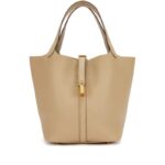 The Hermès Picotin 22 in Beige Marfa Clemence with Gold Hardware (GHW) is a sophisticated and spacious handbag that blends casual elegance with timeless design. Crafted from supple Clemence leather, its soft Beige Marfa tone offers a neutral, versatile look, while the gold hardware adds a touch of refined luxury. With its relaxed bucket silhouette and functional open-top design secured by the signature lock, this bag is perfect for everyday use