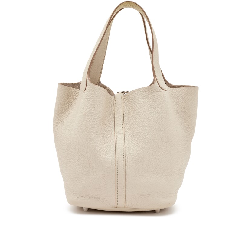 The Hermès Picotin 22 in Beton Clémence is a stylish and practical tote known for its minimalist charm and effortless elegance. Made from supple Clémence leather, it offers a soft, slouchy structure with a luxurious feel.