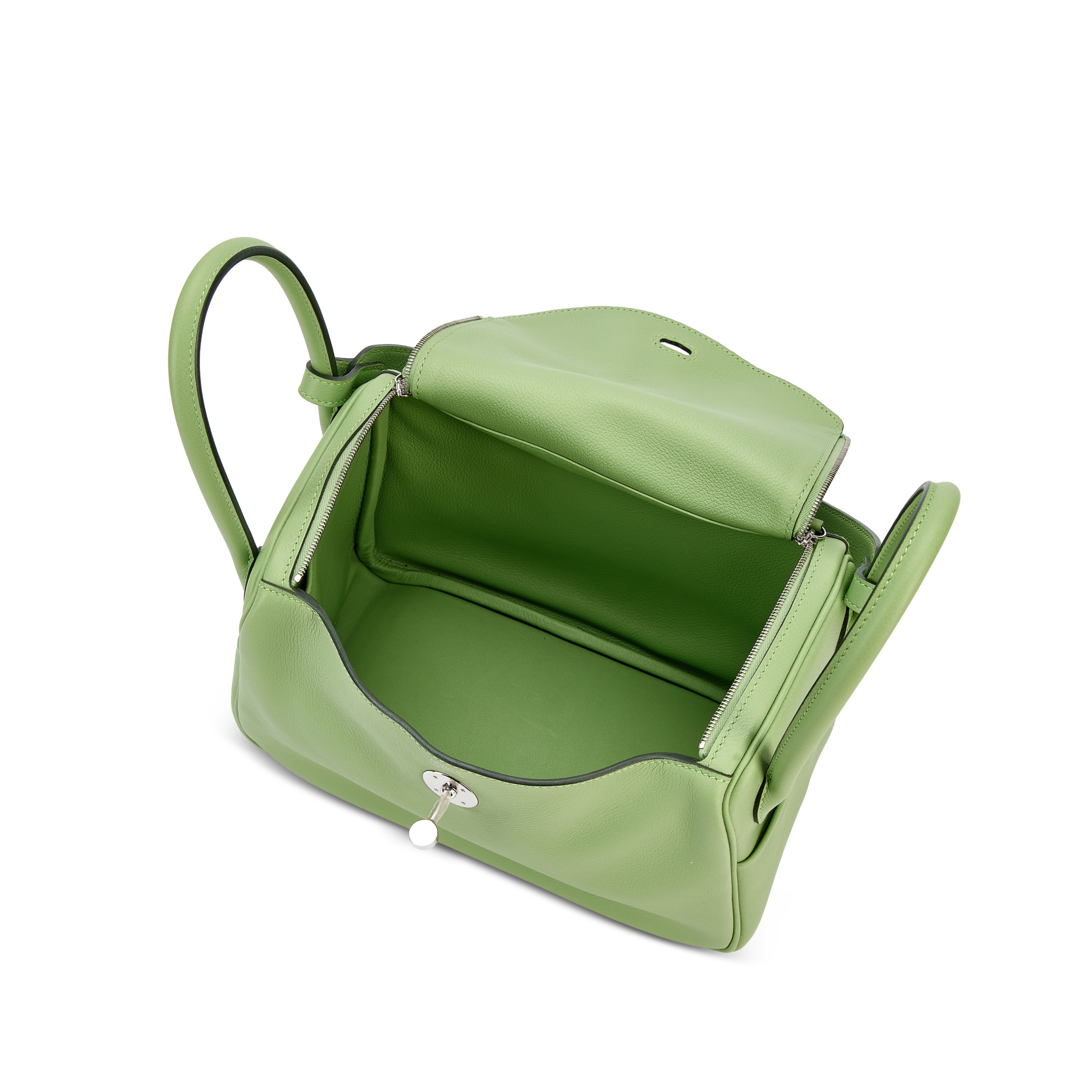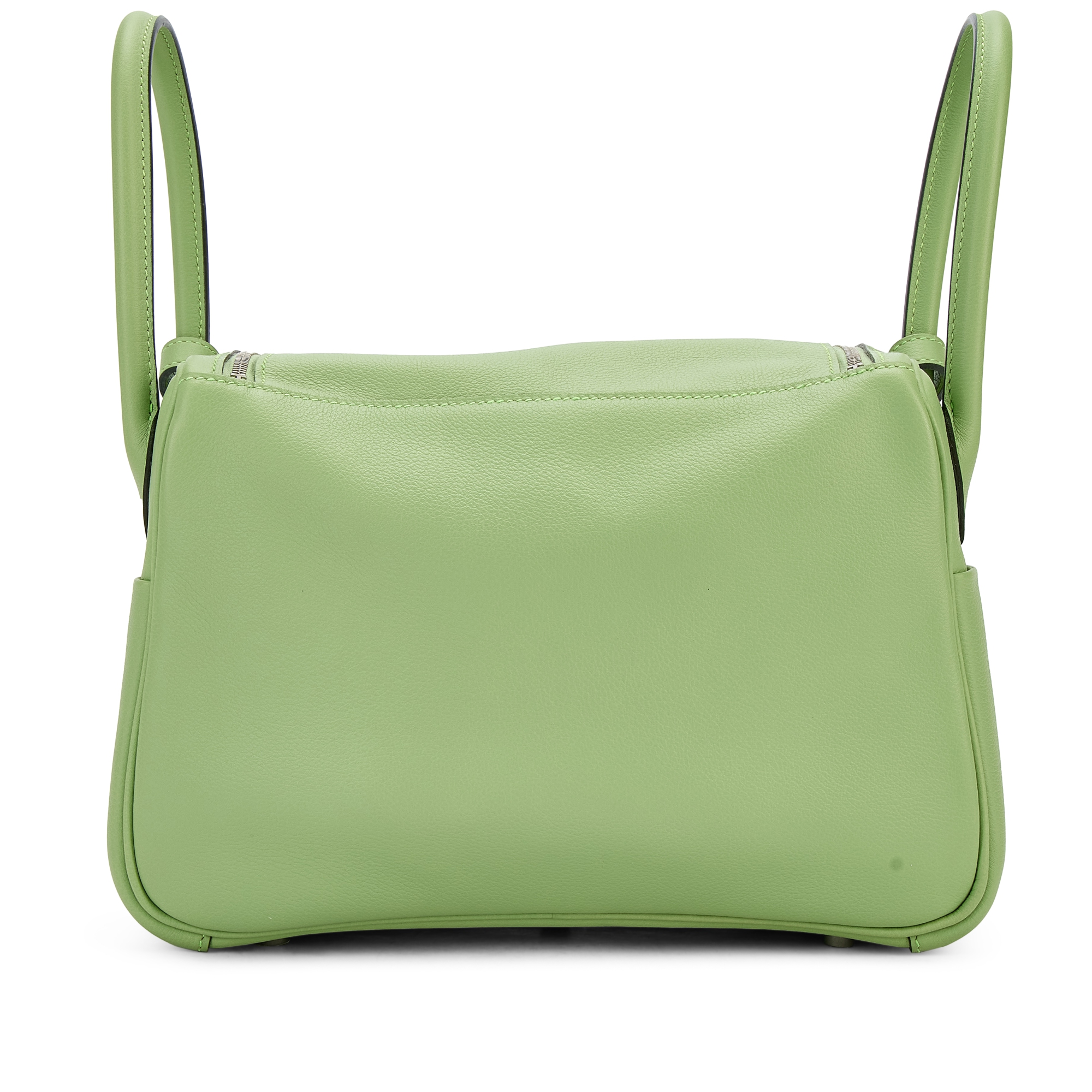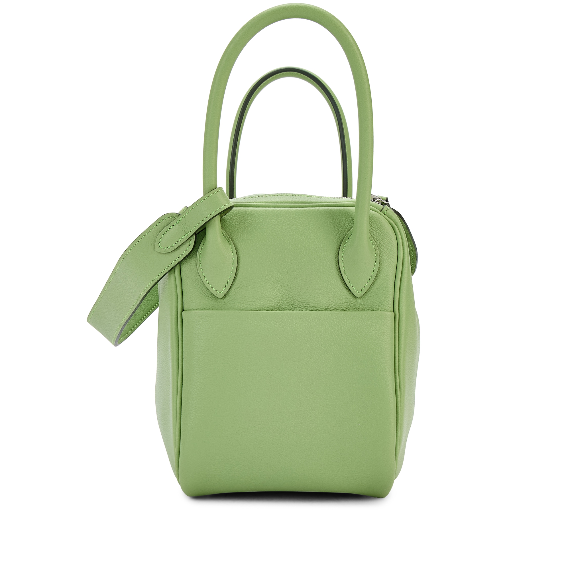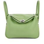 The Hermès Lindy 26 in Vert Criquet Clémence leather with Palladium Hardware is a fresh, elegant take on a classic silhouette. The soft, grained Clémence leather in Vert Criquet—a light, pastel green—offers a subtle pop of color that’s both playful and refined.