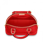 The Alma BB handbag, inspired by the original Art Deco design from 1934, exudes timeless elegance. Crafted from Monogram Vernis embossed patent leather, this compact and glossy bag features signature details such as a gold-tone engraved padlock, hand-stitched Toron handles, and a chic key bell. Designed to add a touch of glamour to any outfit, it includes a removable crossbody strap for versatile styling.