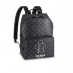 The Apollo backpack showcases the iconic Vivienne mascot, painted by Kim Jones, on luxurious Monogram Eclipse canvas. Enhanced with leather and fabric inlays, this stylish urban accessory blends sophistication with practicality.