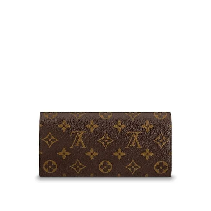 The Emilie wallet in Monogram canvas features a vibrant poppy-red lining, part of the seasonal Monogram Blooming Flowers Coquelicot collection. Its signature press stud is elegantly reimagined as a Monogram Flower. Designed in a sleek envelope style, this wallet opens to reveal an array of practical features, including a zipped coin pocket adorned with a Monogram Flower charm.