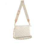 The Coussin PM handbag was one of the standout pieces in the Spring-Summer 2021 collection. Crafted from Monogram-embossed puffy lambskin, it offers versatile styling options. You can wear it cross-body with the adjustable strap, as a chic chain baguette, or comfortably carry it under your arm. With its soft, pillow-like design, the Coussin bag elevates even the simplest outfits, bringing an effortless, fashion-forward vibe.