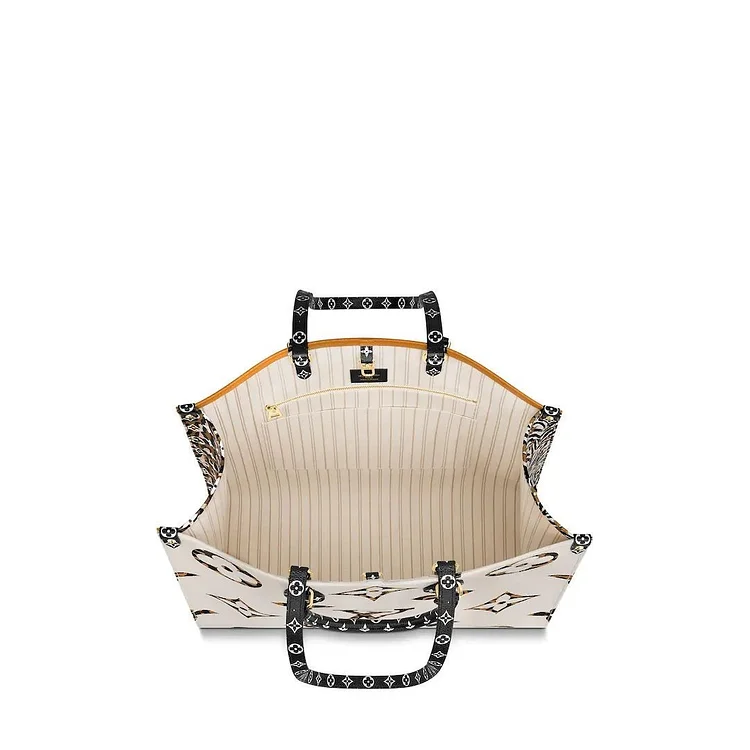 Make a bold statement with the Onthego tote bag, now reimagined in coated canvas featuring a striking blend of Monogram patterns in various sizes, paired with eye-catching leopard and zebra prints. Designed for versatility and everyday style, it offers a spacious interior, dual carrying options, and luxurious detailing.