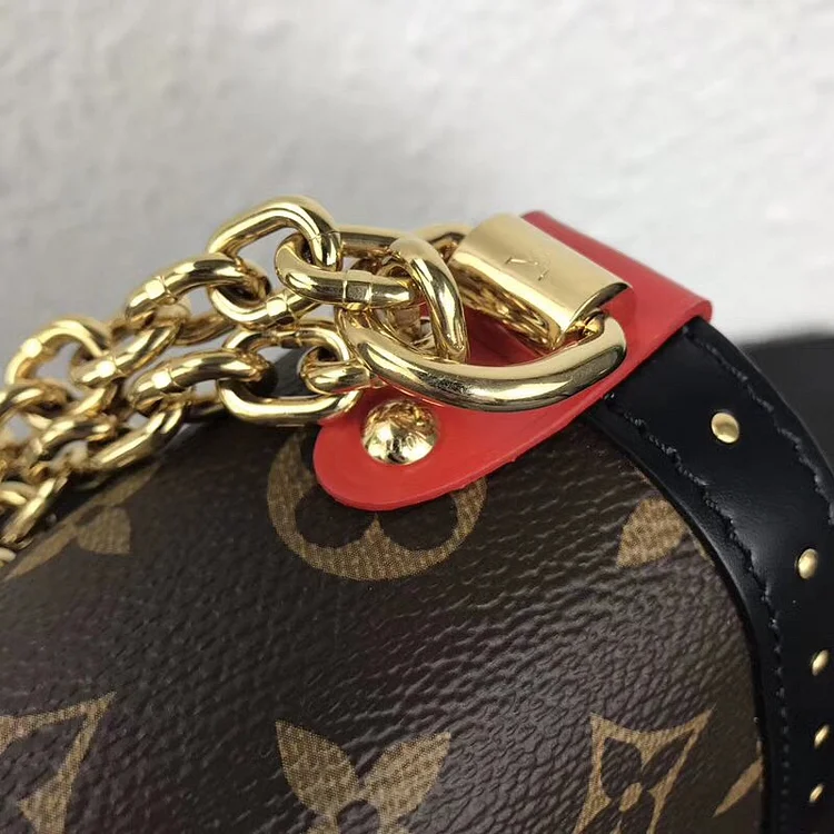 - Monogram canvas featuring smooth cowhide patches and studs, complemented by Epi leather trim. Lined with microfiber and adorned with gold-tone metallic accents. Equipped with a 95 cm chain shoulder strap with a leather pad. Signature twist-lock closure with a transforming design. Tone-on-tone edge dyeing for a sleek finish. Includes one interior flat pocket with a removable mirror and a large inner pocket. Dimensions: 9.1 x 7.1 x 3.1 inches.🚚 Fast Shipping: Get your Handbag in just 7 to 9 working days!