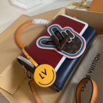 - Epi leather featuring embroidered accents, complemented by a Monogram canvas patch and smooth Epi leather trim. The interior is lined with microfibre and enhanced with silver-tone hardware. It includes a Monogram canvas-covered lock, a removable and adjustable leather strap, and a smooth Epi leather top handle. An exclusive removable charm adds a unique touch. The bag also boasts a coated transforming Twist lock, a flat inside pocket with a removable mirror, and a spacious large interior pocket.