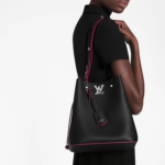 The Louis Vuitton Lockme Bucket Bag (M54677) is a refined and versatile accessory that seamlessly blends timeless elegance with modern functionality. Crafted from soft grained calfskin leather, this bucket-style bag features a sleek silhouette complemented by silver-tone hardware and the signature LV turn-lock closure, ensuring both security and style.