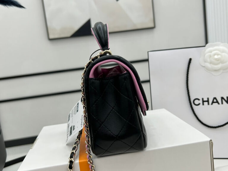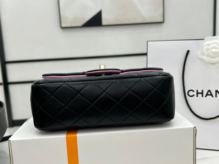 The Mini Rectangular Black And Pink Strap Bag: A sleek fusion of elegance and playfulness, adding a pop of color to your ensemble. Compact yet spacious, it’s the ideal accessory for a night out or a day of adventures. Elevate your style with this chic statement piece, versatile enough for any occasion.