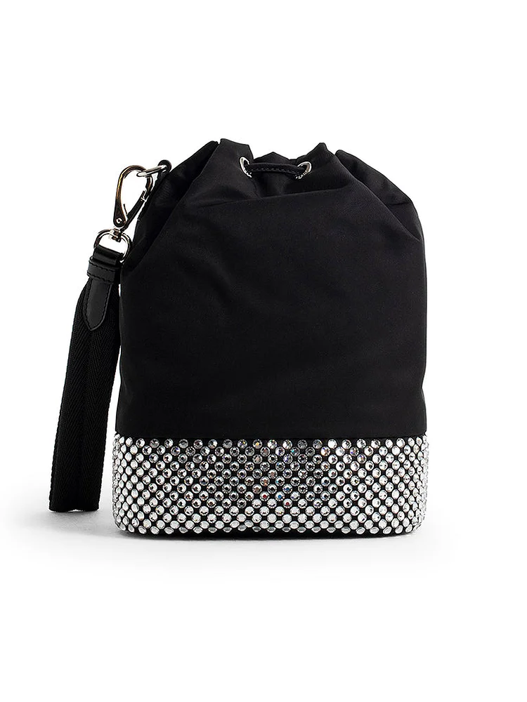 Bucket Bag Color: Black/Crystal Nylon with Crystals