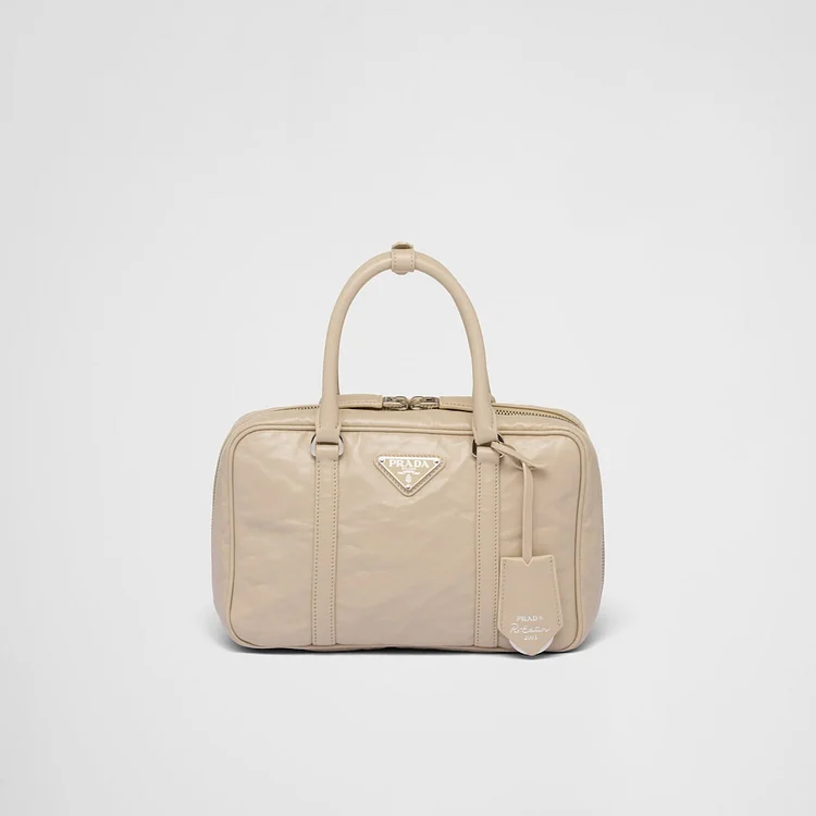Elegant and timeless, this medium top handle bag is crafted from soft antique-finish Nappa leather. Featuring a structured silhouette, top handle, and detachable shoulder strap, it blends classic style with modern versatility—perfect for everyday sophistication.