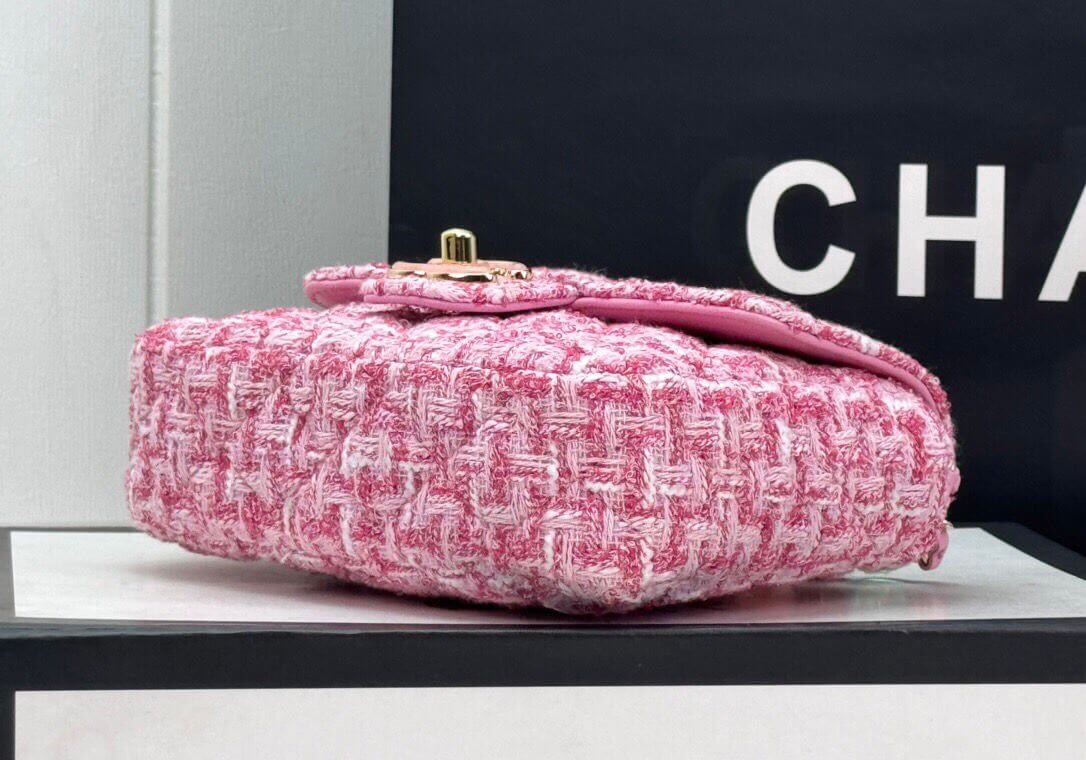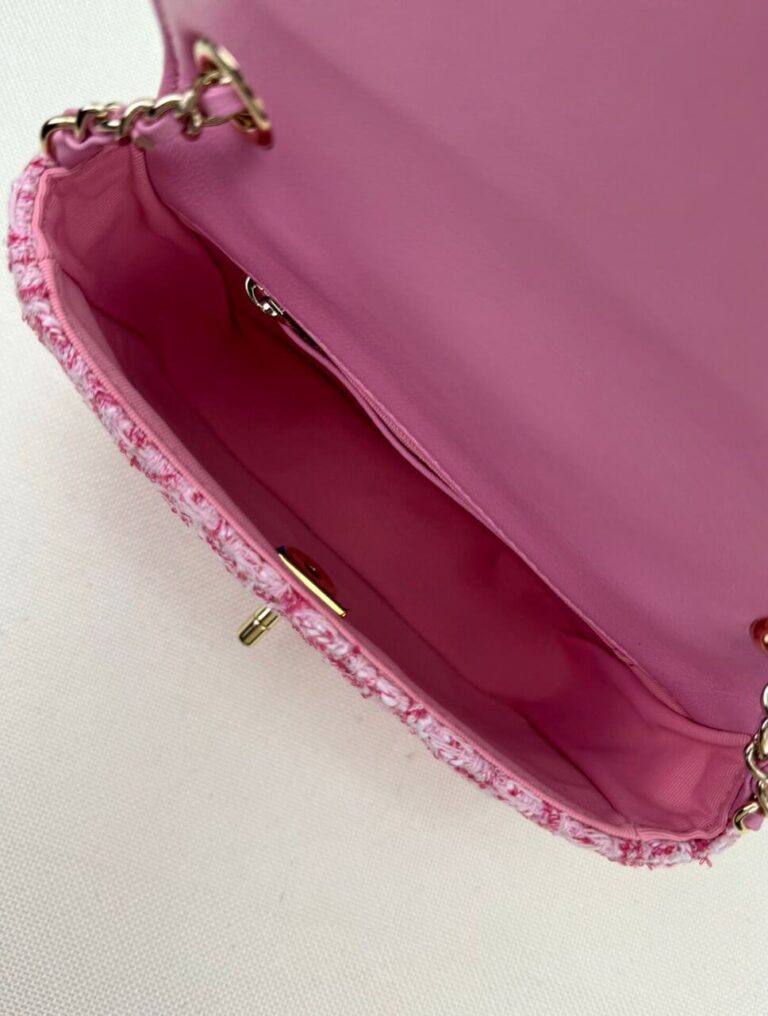 Why Choose the Tweed Mini Heart Square Flap Pink White Bag?