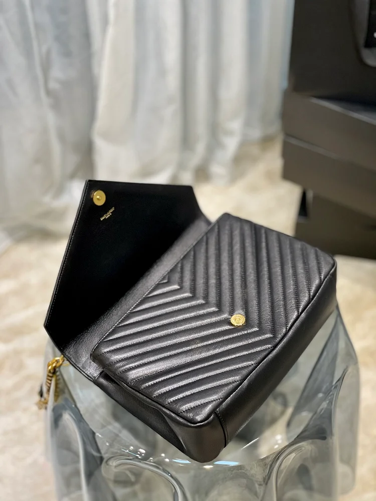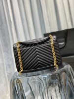 Elegant and edgy, the College Large Chain Bag is crafted in luxurious black quilted leather, accented with gold-toned hardware and the iconic YSL logo. Featuring a top handle, removable chain shoulder strap, and a roomy interior with organized compartments, it blends sophistication with everyday practicality.