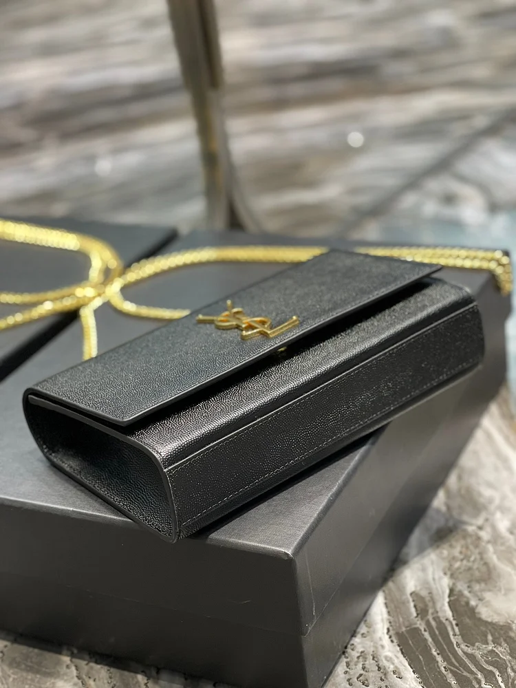 The YSL Kate Medium Bag in Grain de Poudre embossed leather is a timeless statement piece. Featuring the iconic YSL logo, elegant chain strap, and structured silhouette, it adds effortless sophistication to any ensemble—perfect for both day and evening looks.